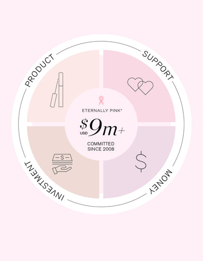 Votre achat est toujours bénéfique… car nous sommes bien plus qu’une marque de beauté. Nous reversons une partie des bénéfices de chaque produit vendu à la lutte contre le cancer du sein. C’est notre engagement Eternally Pink®, conçu pour honorer le courage et la force de notre cofondatrice Gayle Brinkenhoff et ceux des femmes du monde entier.